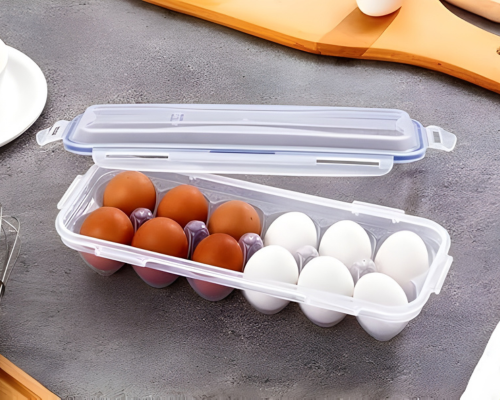 Store and organize eggs safely with 12 Grid Egg Tray, featuring secure slots, durable construction, compact design, and easy refrigerator storage.