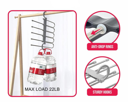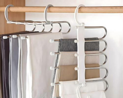 The 5 in 1 Hanger offers versatile hanging solutions, saving space while organizing clothes, accessories, and more efficiently.