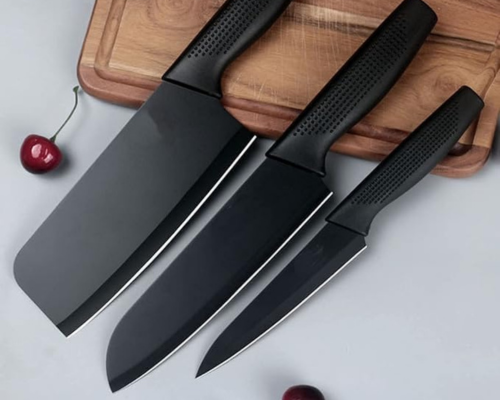 Upgrade your kitchen with Bloomblade 3pcs Kitchen Knife Set, offering sharp precision, durability, and stylish black design.