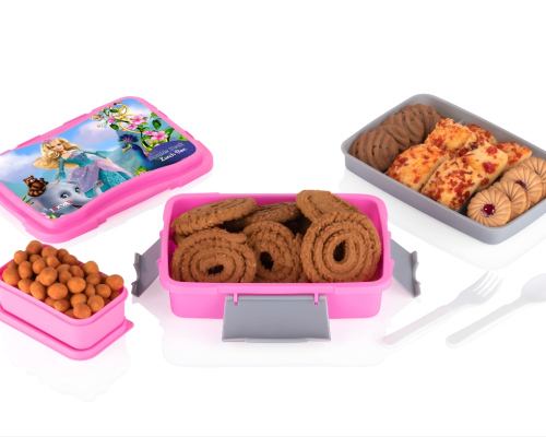 Cute cartoon lunch box with mixed prints makes mealtime fun, keeping food fresh and kids excited every day.