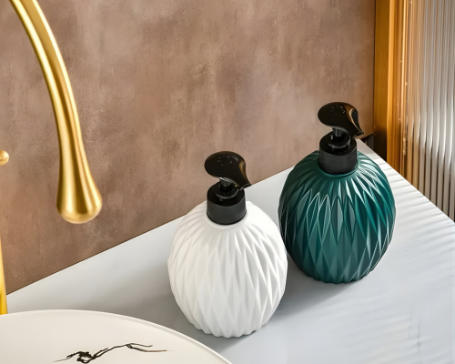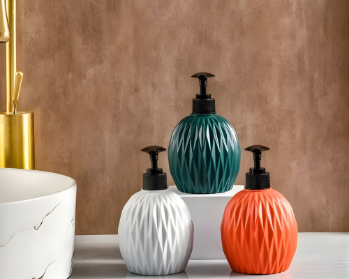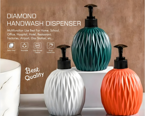 Elegant diamond-style liquid dispenser enhances your space while dispensing soap or sanitizer smoothly for clean, organized kitchen and bathroom use.