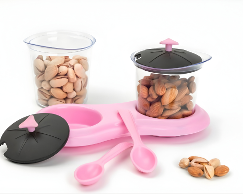 Dry Fruit Box with 2 compartments keeps your snacks fresh and organized, perfect for storing assorted dry fruits hygienically.
