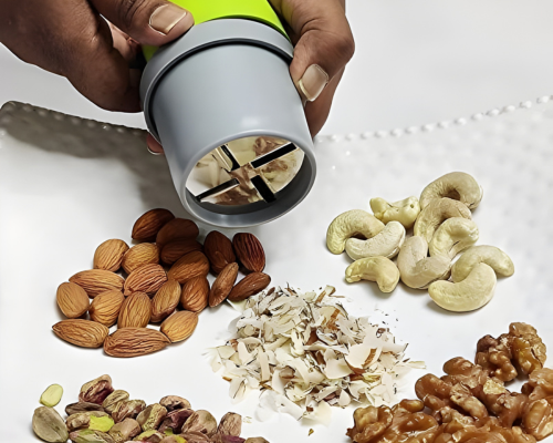 Cut and slice dry fruits effortlessly with Dry Fruit Cutter n Slicer, featuring sharp blades, safe handling, compact design, and durable construction.