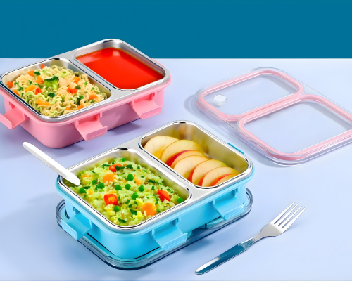 Duo Buddy steel lunch box with 2 compartments keeps your meals fresh, organized, and perfect for balanced daily eating.