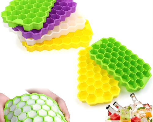 Honeycomb Ice Tray makes multiple hexagonal ice cubes at once with its honeycomb design—perfect for chilling drinks quickly and stylishly.