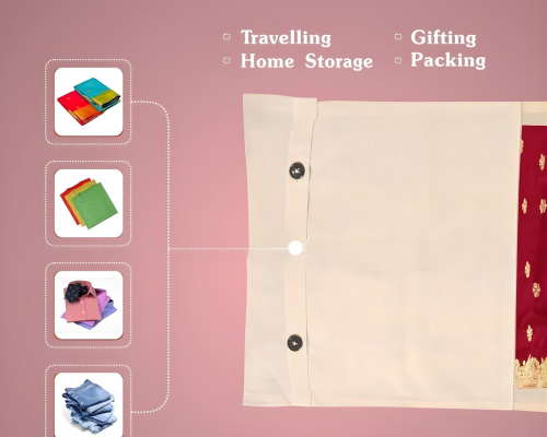 Protect and organize your sarees with durable saree covers featuring easy button or zipper closures for secure storage.