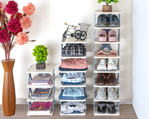 Organize your footwear neatly with a sturdy shoe rack that saves space and keeps shoes easily accessible and dust-free.